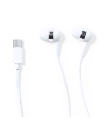 Auriculares presentados en cajita blanca, con conexión Tipo C.
